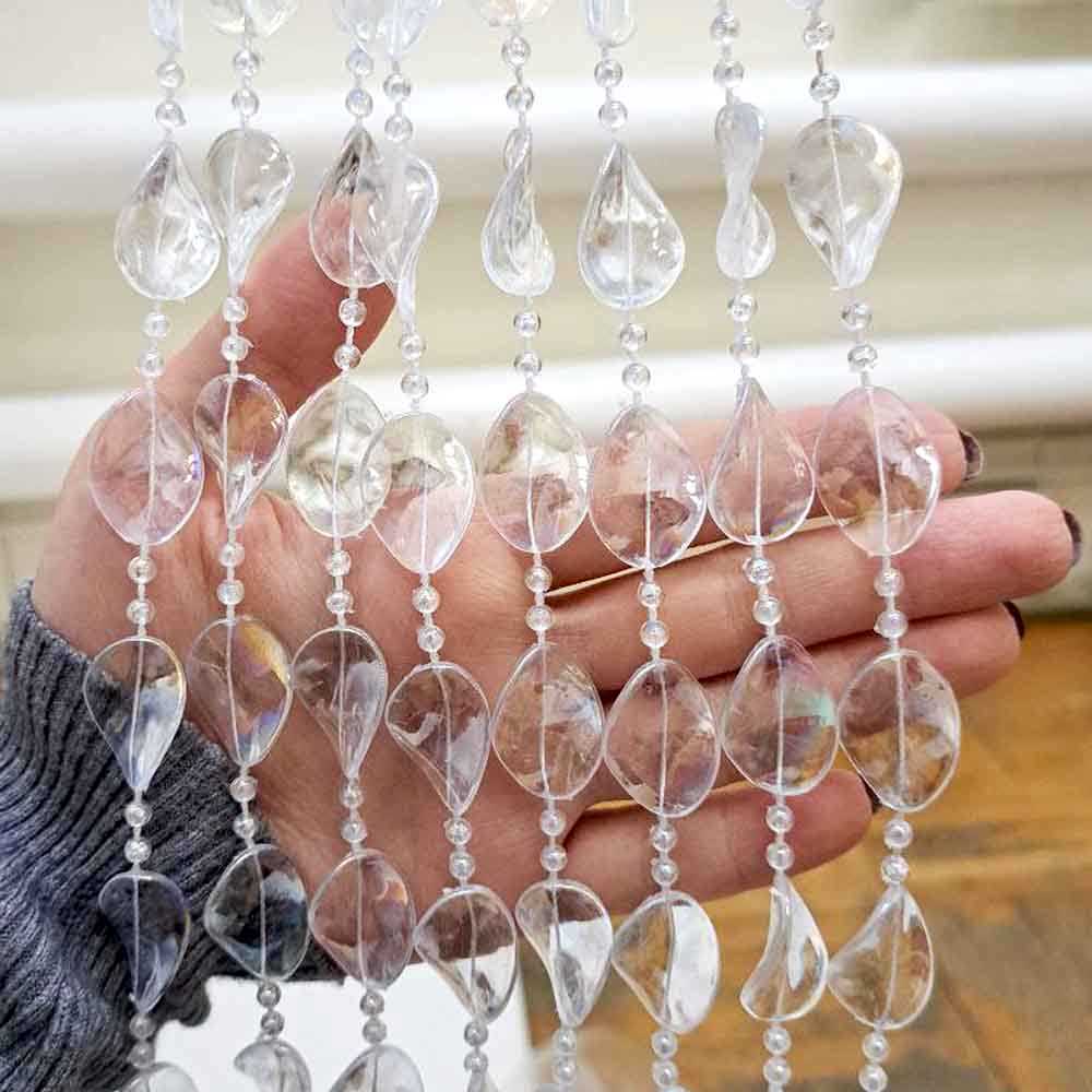 Празддничное оформление - можно собрать из бусин шторы или украсить люстры.