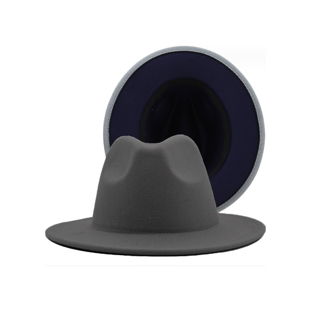 Шляпа Федора фетровая 2 цвета, серый+темно-синий
