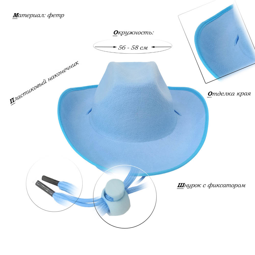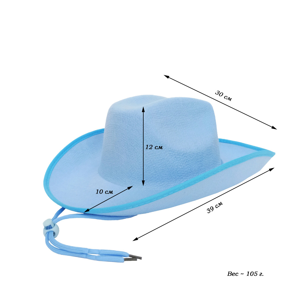 Шляпа ковбойская, голубой - 1 шт.