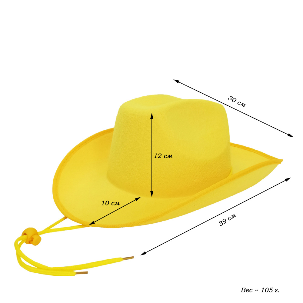 Шляпа ковбойская, желтый - 1 шт.