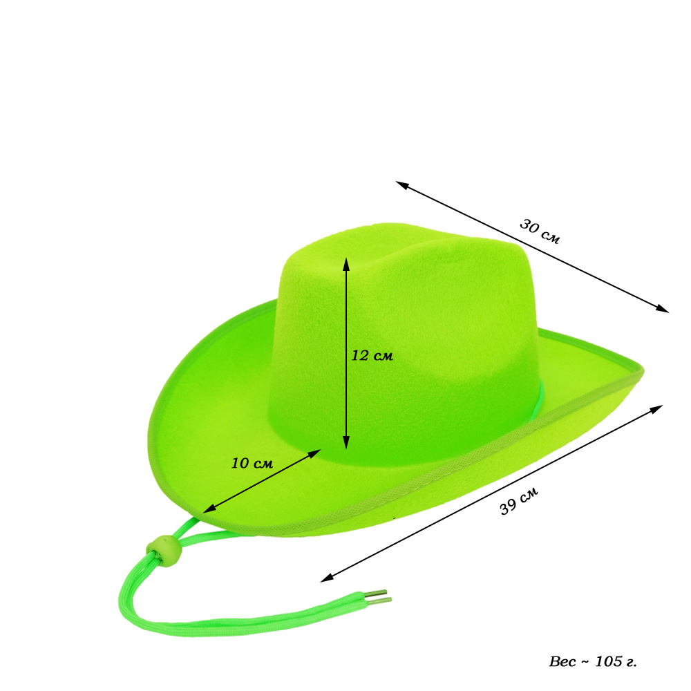 Шляпа ковбойская, салатовый - 1 шт.