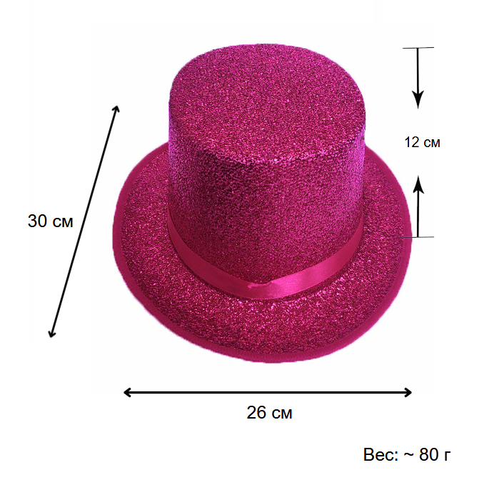 Шляпа Цилиндр с блеском, малиновый