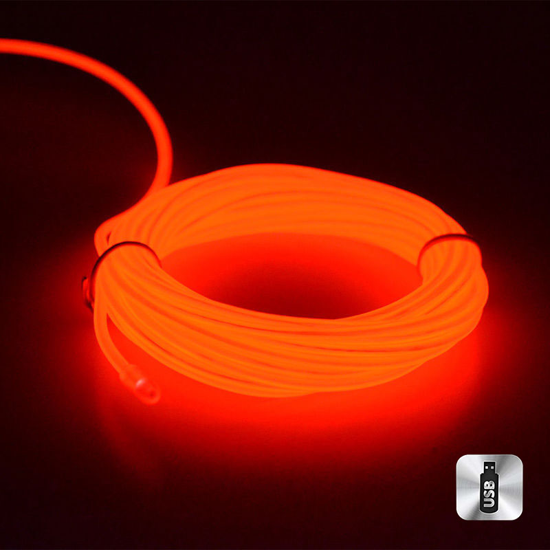 Шнур неоновый светящийся от USB 3 м, красный