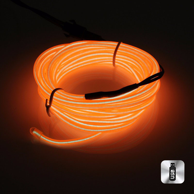 Шнур неоновый светящийся от USB 4 м, оранжевый