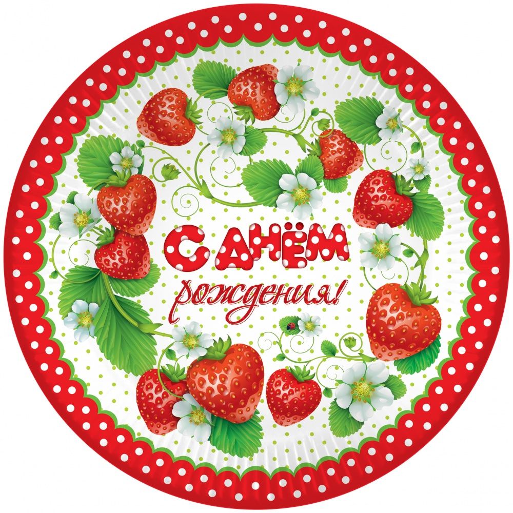 Тарелки (7''/18 см) С Днем Рождения! (клубника), 6 шт.