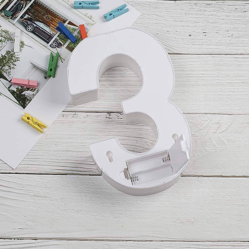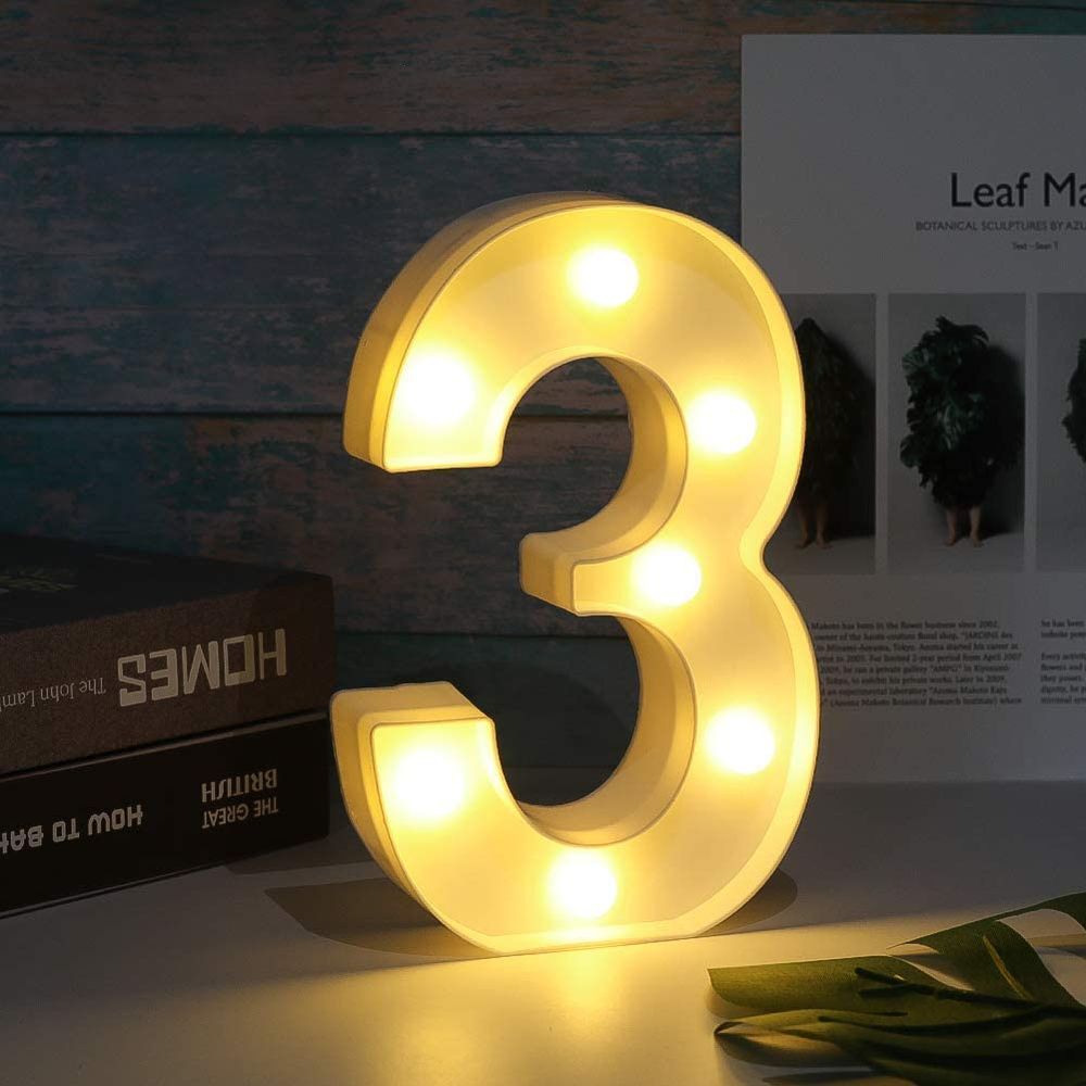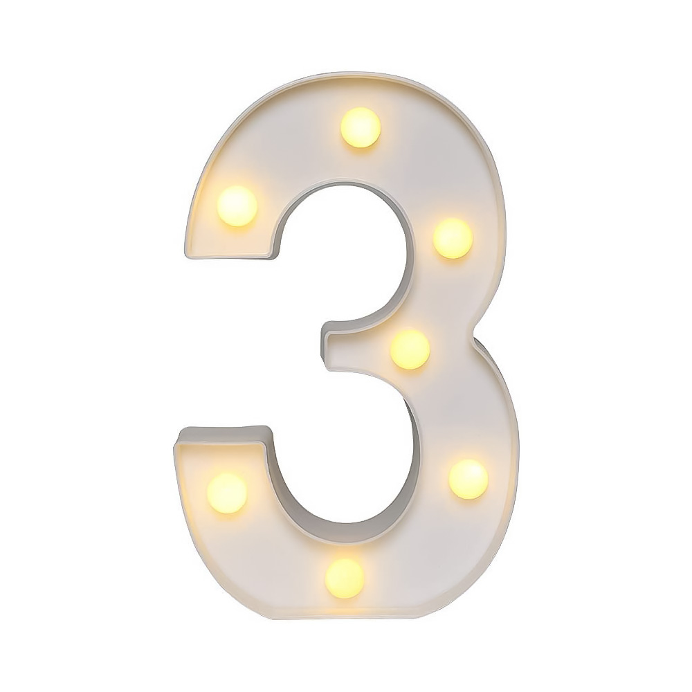 Цифра 3 светодиодная 21 см, от батареек , теплый белый