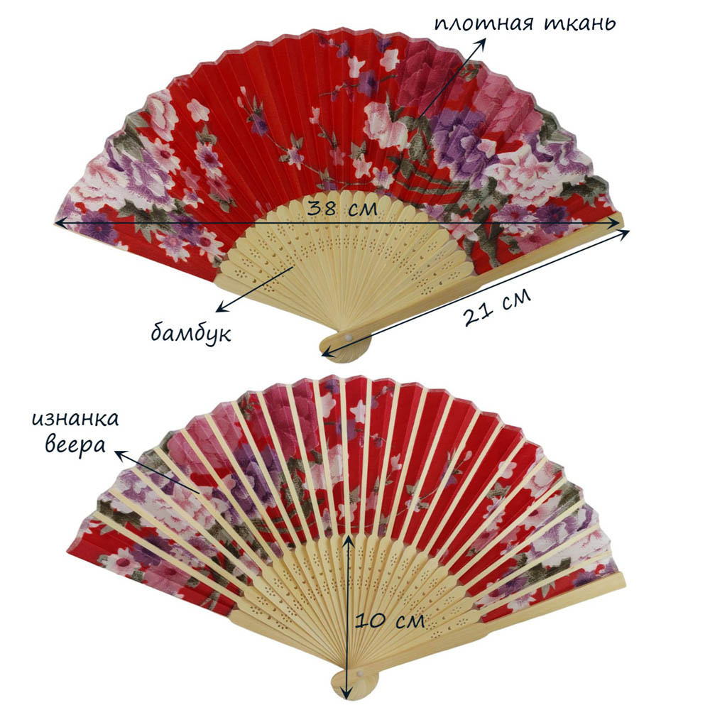 Веер с цветочным узором 38х21 см, №7