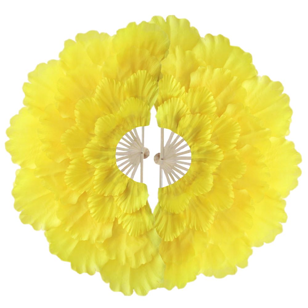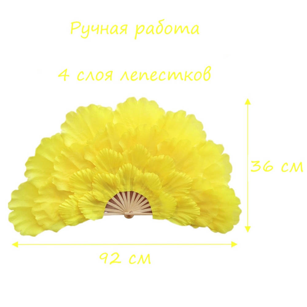 Веера пионы для танцев 92х36см 4-х слойные 2 шт., желтый