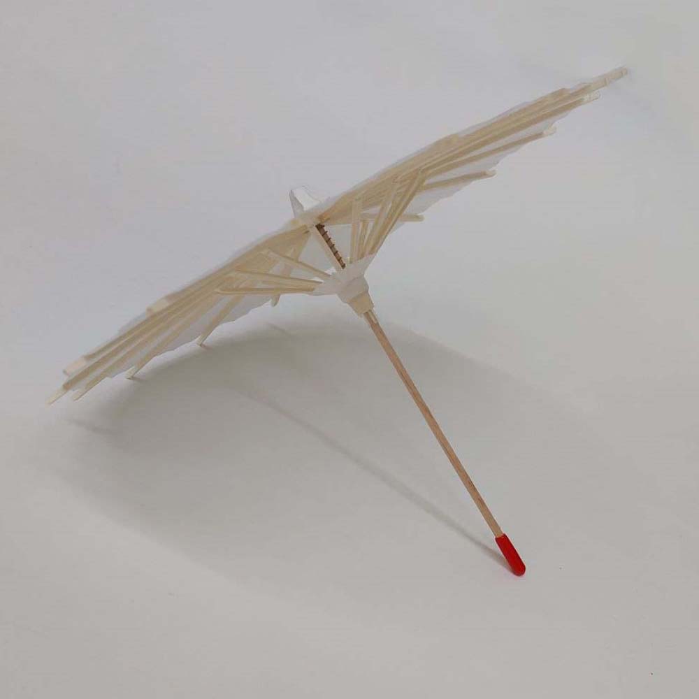 Каркас зонтика выполнен из дерева,купол зонта изготовлен из бумаги.